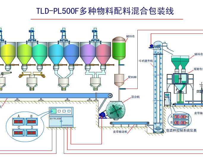 多物料配料混合包裝線 多物料配料混合包裝線廣泛應用于石油化工、化肥、糧食、飼料、建材、冶金、陶瓷、玻璃等多行業(yè)的粒料、粉料、(不規(guī)則)塊料、液體等多類型產(chǎn)品的配料、包裝。
