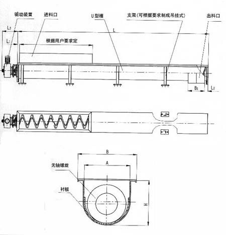 WLS無(wú)軸螺旋輸送機(jī)結(jié)構(gòu)圖